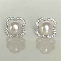 7.5-8mm cultured white pearl stud with sterling silver and cubic zirconia-white