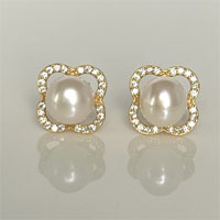 8.5mm pearl stud with sterling silver and cubic zirconia