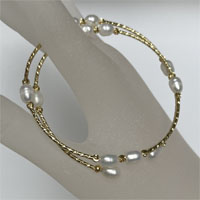 5.5mm Cultured white pearls double snake bracelet - yellow gold color wrap quantity