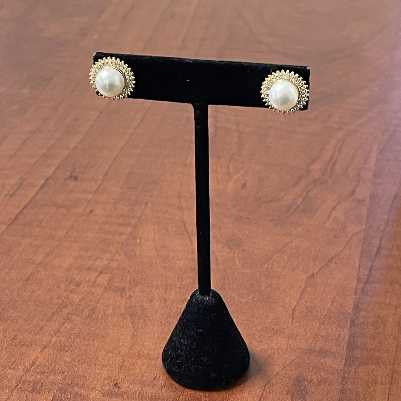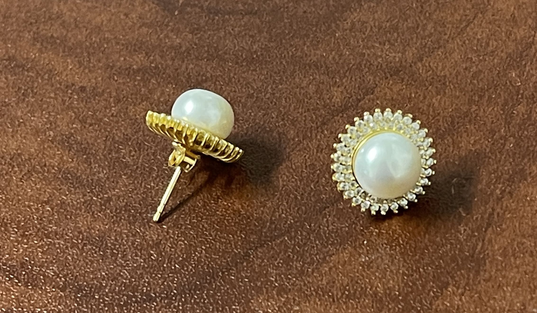 8.5mm pearl stud with sterling silver and cubic zirconia – yellow