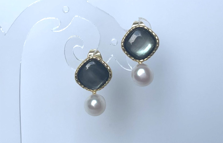 Tahitian seashell is made of 6mm cultured freshwater white pearls and genuine shell. All metals including butterfly earring back and post are gold filled copper.